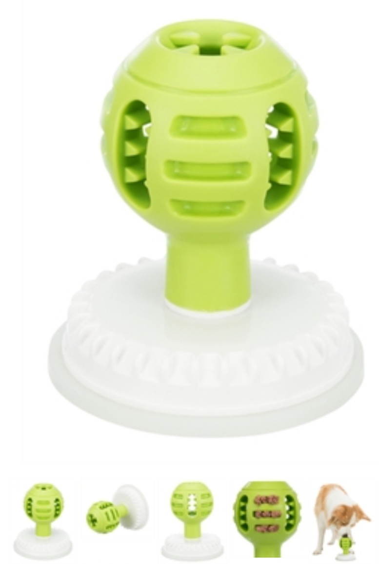 - Snack en likspeeltje voor de hond in de vorm van een bal op een standaard